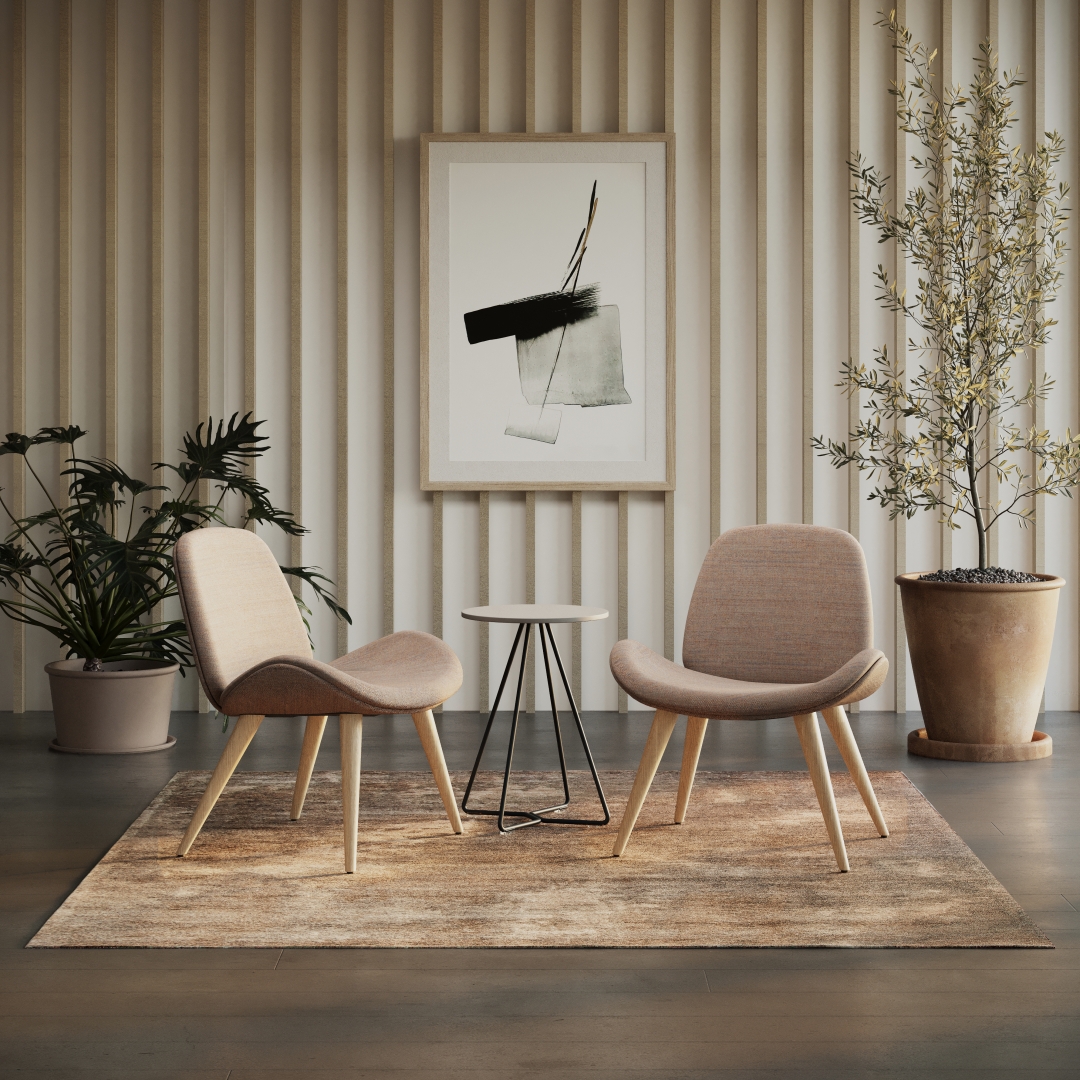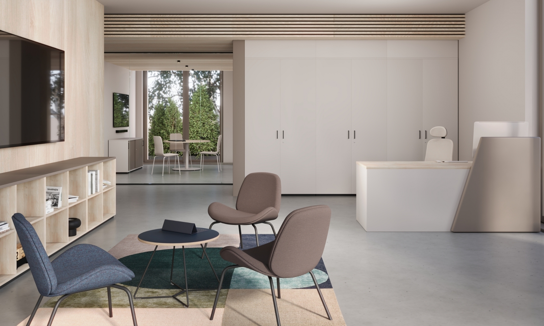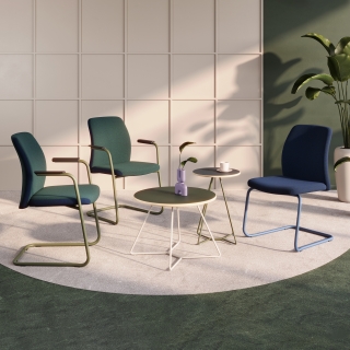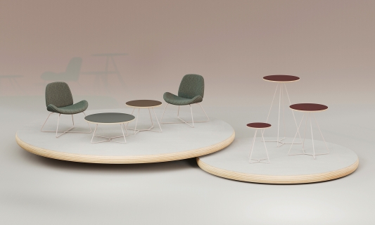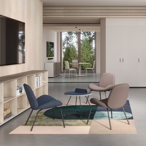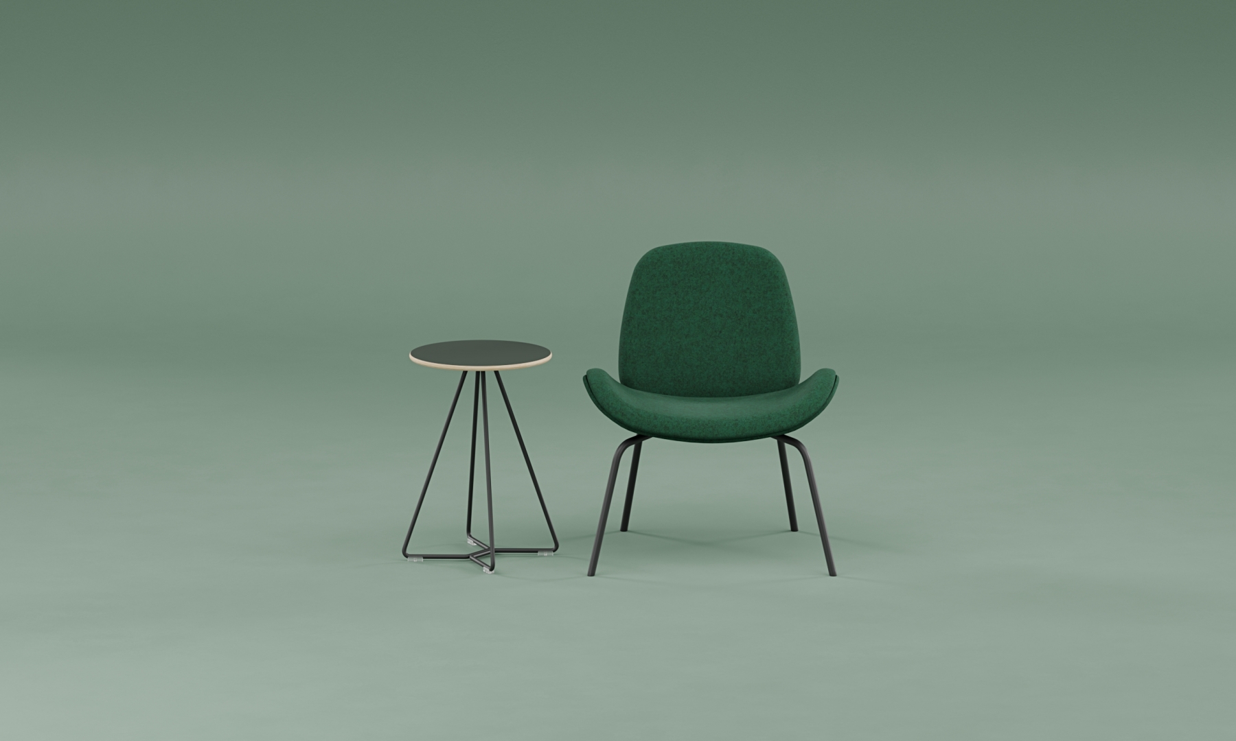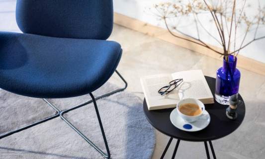 The base of the Tilkka tables follows the look of the soft seating model with X-sled base so the interior keeps the harmonious ambience.
