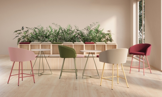 Interesting colours create possibilities! The table tops are available in wide range of finishes. The melamine, linoleum and Fenix provide plenty of decors and textures that fire up creativity.