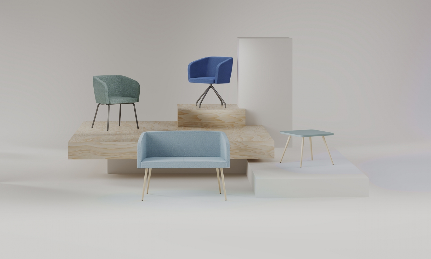 Small and light tables with a metal or wooden legs create, together with armchairs and sofas, an ideal set that is perfect for waiting rooms, breakout areas or informal meeting rooms.​