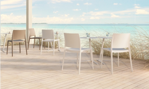 Made from a single piece of high-quality plastic, the Yuni chair is ideal for gardens, terraces or café patios.