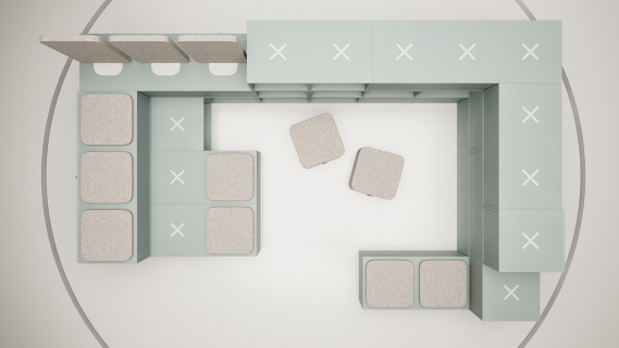 With OXO you are capable of building room-in-room spaces and meeting islands that are alternative to traditional meeting rooms with chairs and tables.