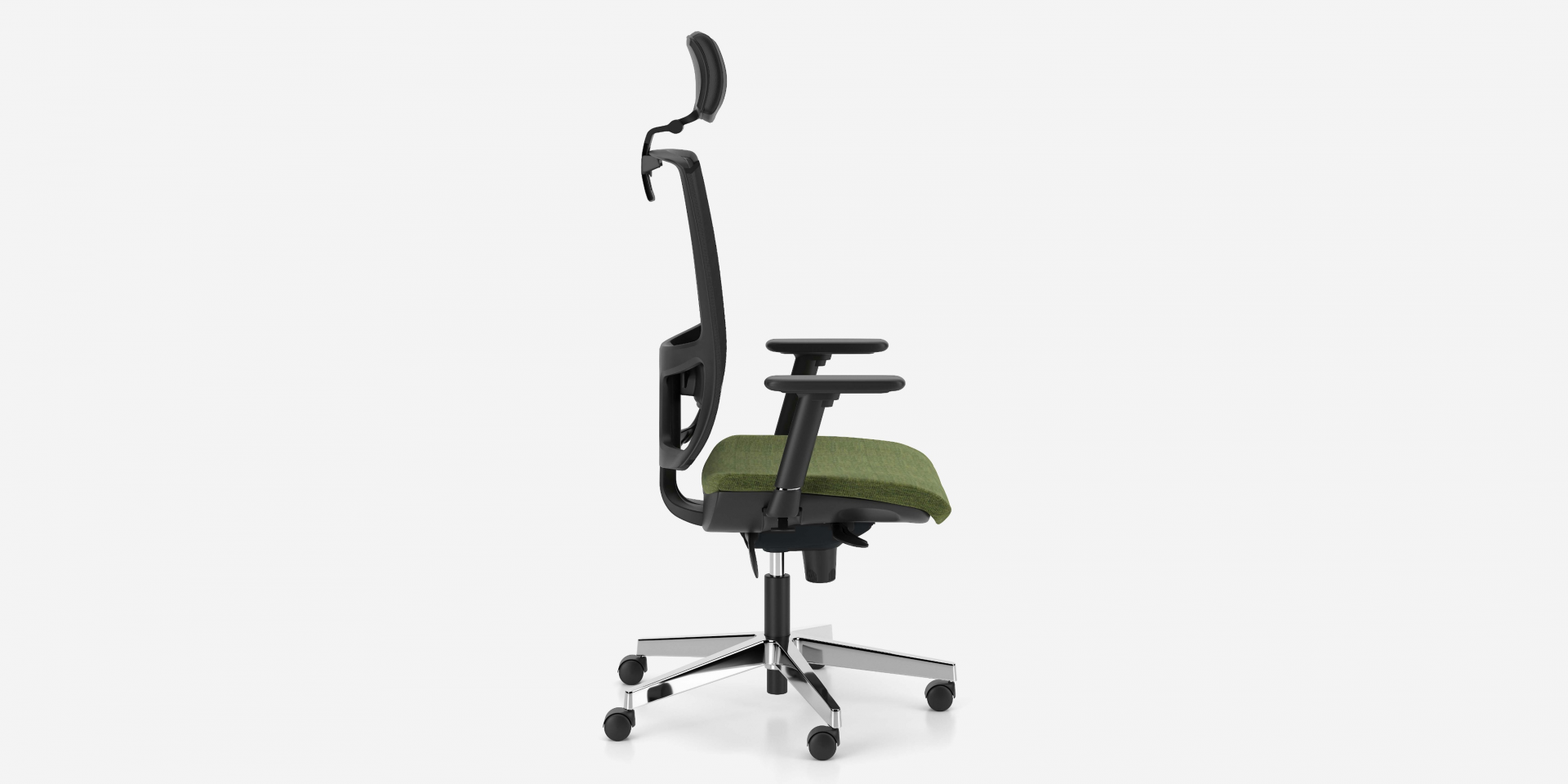 • 4-D adjustable armrests (available only with ES, EST and EFT mechanisms) made of polished aluminum, other components of the PA + GF. Black PU armpads. Adjustment range: height 75 mm, pad adjustment front-back: 60 mm, armpad rotation: 15°, width adjustment: 60 mm.