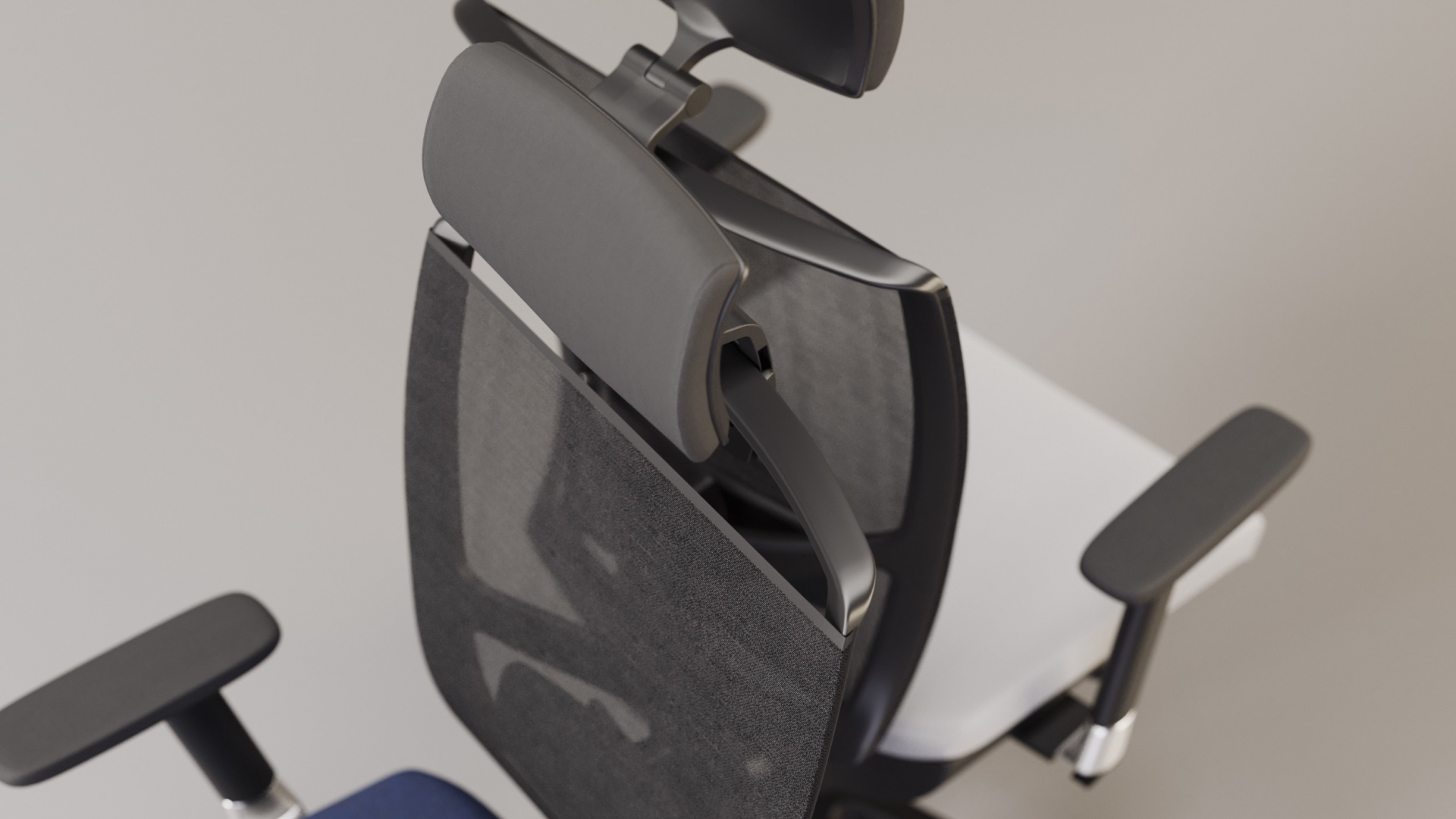 • 3-D adjustable armrests made of black plastic (PA + GF) with black PU pads. Adjustment range: height 75 mm, pad adjustment frontback: 60 mm, armpad rotation: 10°.